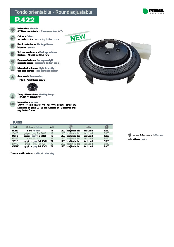 Stylized individually on/off switchable light diffusers with 5 white lighting LED. Fixation by clips.