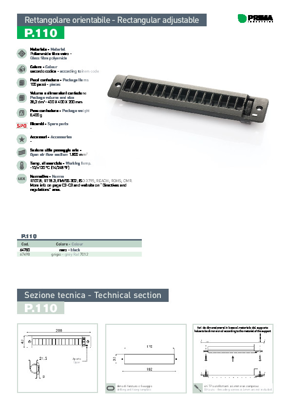 Rectangular adjustable air diffuser, with wheel operated air flow control throttle. Fixation by screws.