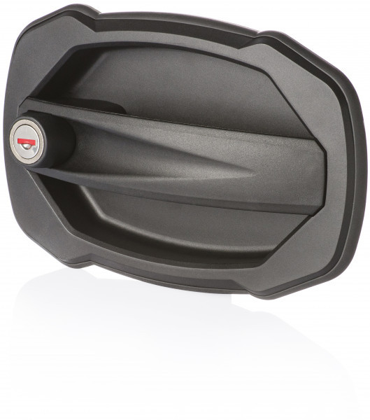 Maniglia porta autista. Azionamento a pulsante. Pulsante a scorrimento libero a serratura bloccata. Disegno stilizzato della serie SPACEFORM.